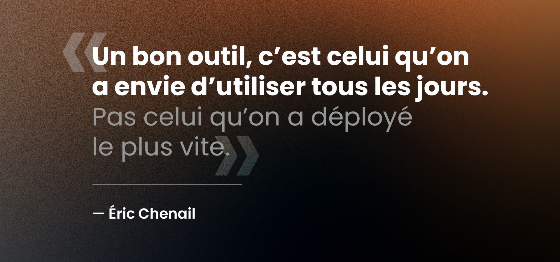 Et elle est conçue pour évoluer. Chaque trimestre, de nouvelles capacités s’ajoutent, alignées sur les priorités réelles de l’équipe. On respecte la courbe d’apprentissage. On s’assure que chaque ajout est adopté avant de passer au suivant. Parce que les besoins d’une force de vente en Q1 ne sont jamais les mêmes qu’en Q4 — et l’outil doit pouvoir suivre.
