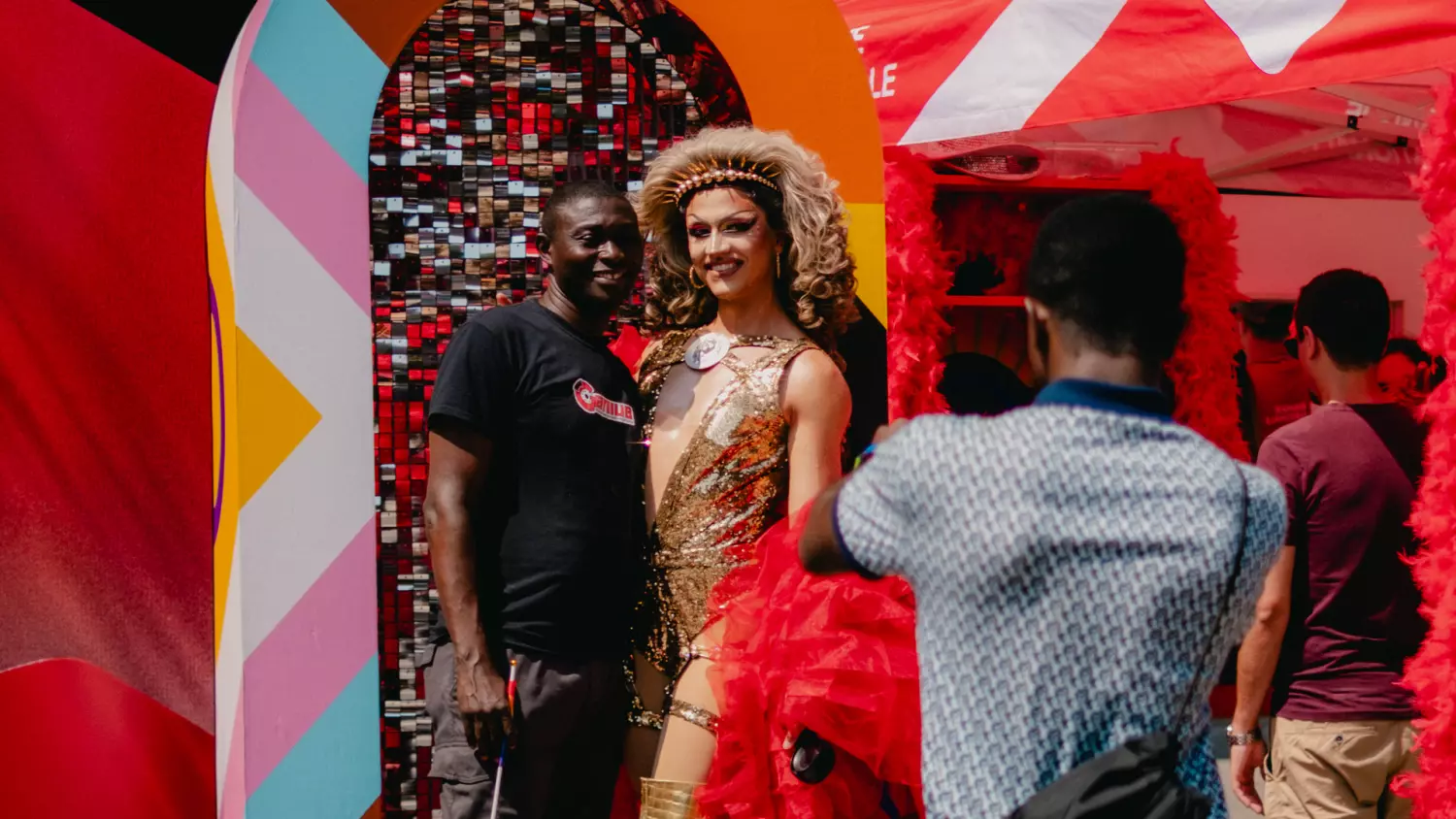 With the help of drag queen Adriana The Bombshell, a leading personality on Canada’s Drag Race, Bob designed a 10 x 20-foot space that transformed into a stage for celebration and personal expression.