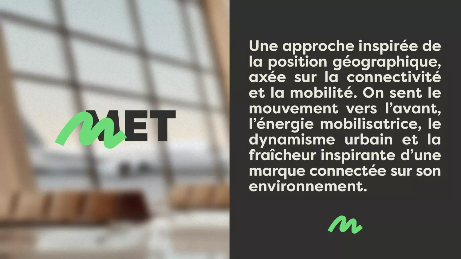 Dès les premières étapes, Bob a misé sur une approche collaborative avec l’équipe du MET afin de bien orienter la vision stratégique du projet. En plaçant la connectivité, le dynamisme urbain et la mobilité au cœur de la réflexion, l’agence a contribué à mettre en place les fondements de la marque et a conçu une identité visuelle et narrative qui reflète un véritable mouvement vers l’avant. Le nom MET évoque à la fois la métropole, le mouvement et une forme d’ouverture sur le monde, donnant une nouvelle dimension à l’aéroport dans l’imaginaire collectif.
